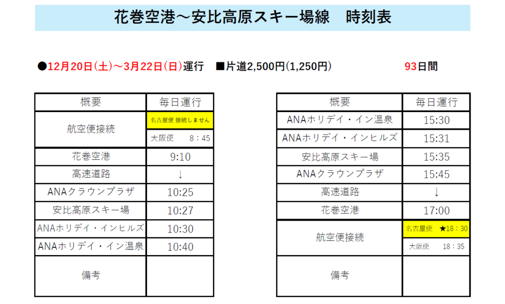▶安比高原スキーシーズン開始に合わせた日程で運行
