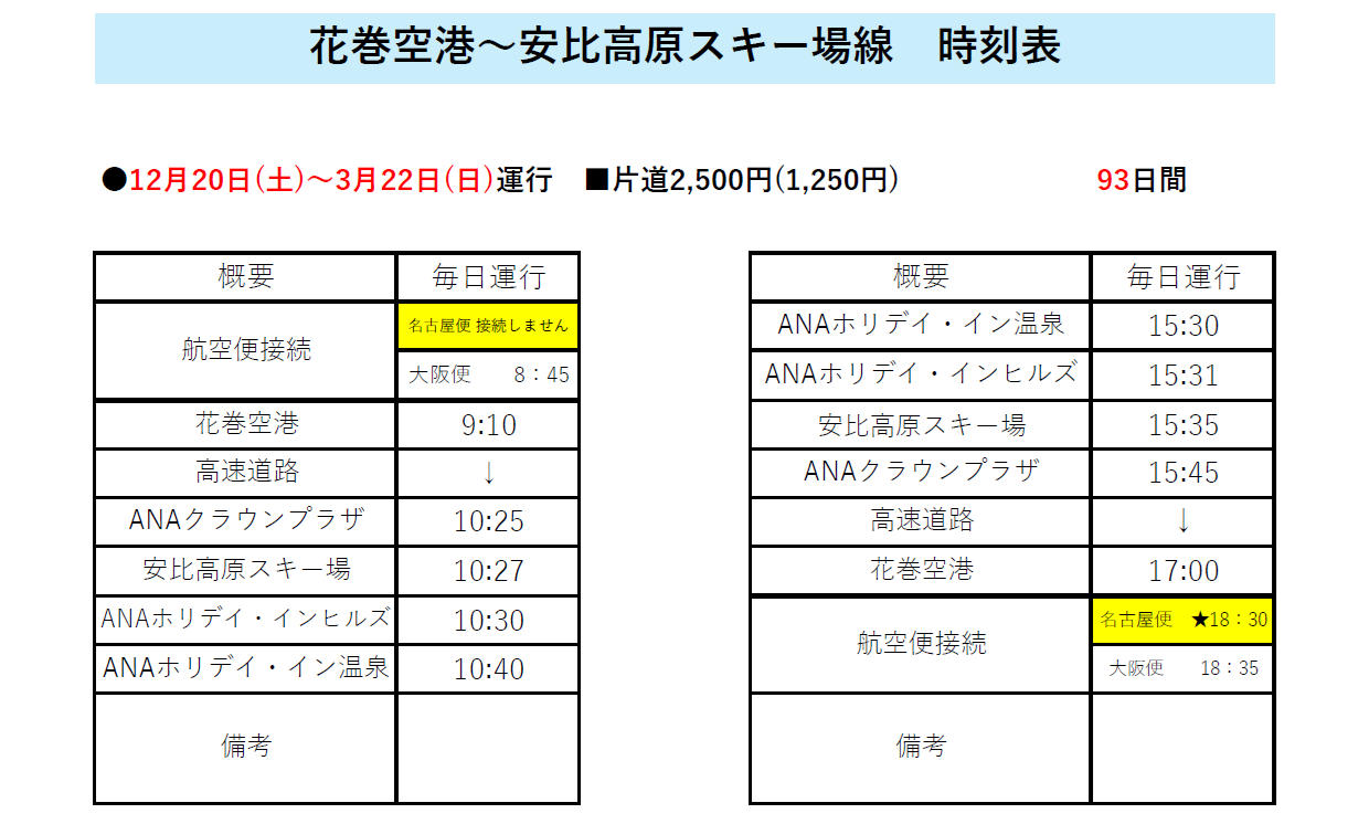 2025-2026 Winter Season 安比高原スキー場線の運行予定時刻のお知らせ